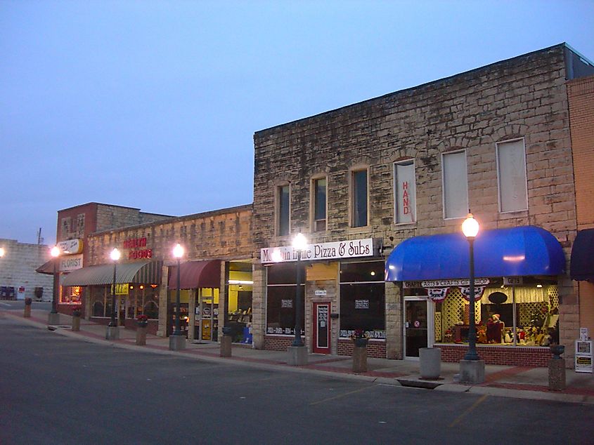 Escaparates a lo largo de 2nd Street en el centro de Mountain Grove, Missouri. Por Brian Stansberry, CC BY 4.0,Wikimedia Commons