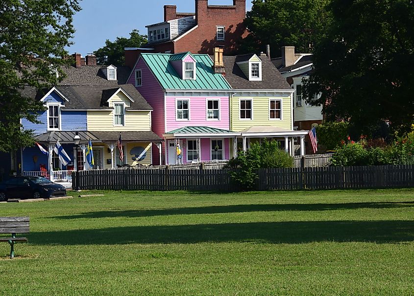Casas vibrantes en la ciudad de New Castle, Delaware. Crédito de la imagen Lisa Rapko a través de Shutterstock