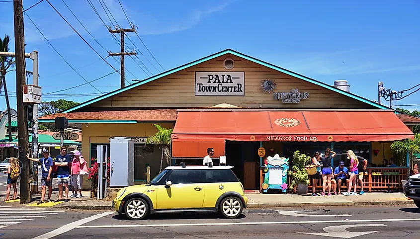 El concurrido centro de la ciudad de Paia, Hawaii. Crédito de la imagen: EQRoy/Shutterstock.com.