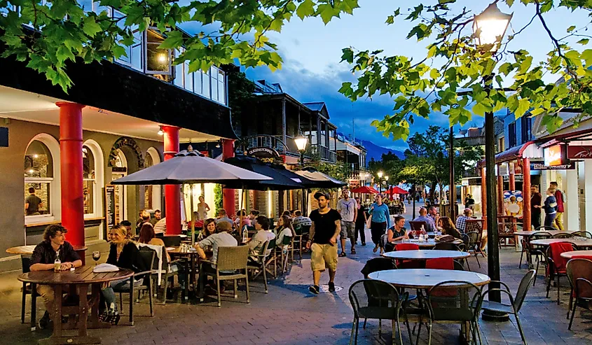 Visitantes en Queenstown Mall, uno de los destinos turísticos más populares de Nueva Zelanda.