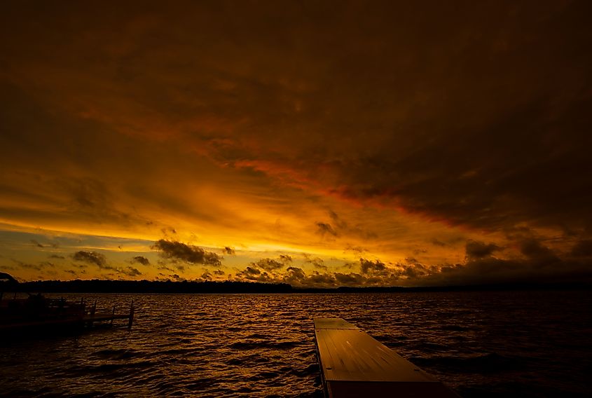 Una espeluznante puesta de sol sobre Serpent Lake, Minnesota, que se cree que es el hogar de una serpiente marina mítica.