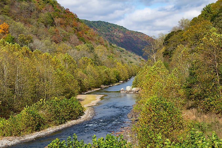 La sección de depresión del brazo sur del río Potomac vista desde el ferrocarril panorámico Potomac Eagle. Crédito editorial: Robert Babcock / Shutterstock.com.