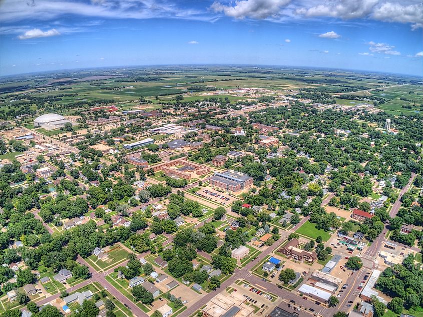 Vermillion, una pequeña ciudad universitaria en la zona rural de Dakota del Sur, sede de la Universidad de Dakota del Sur.