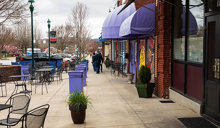 Main Street en Hendersonville, Carolina del Norte, en un día de principios de primavera. Crédito de la imagen Nolichuckyjake a través de Shutterstock