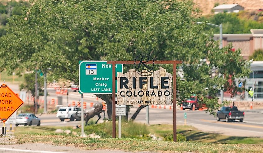 Cartel de bienvenida al histórico Rifle, Colorado. Crédito de la imagen Kristi Blokhin a través de Shutterstock