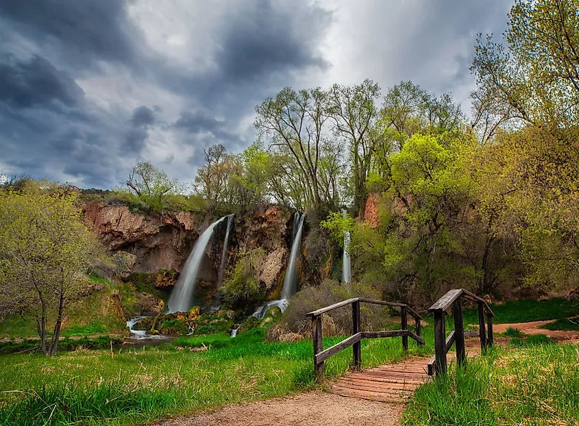Nubes tormentosas sobre el Parque Estatal Rifle Falls cerca de Rifle, Colorado.