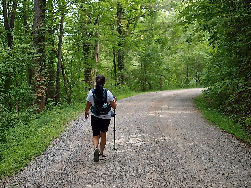 Las áreas boscosas y colinas a lo largo de la histórica Natchez Trace Parkway de 440 millas son el hogar de más de 25 especies de serpientes, incluida la serpiente de cascabel del bosque. El sendero, que se extiende desde Nashville hasta Natchez, Mississippi, atraviesa bosques, humedales y pastizales, con muchas oportunidades para que los amantes del aire libre caminen, anden en bicicleta y observen la vida silvestre a lo largo de la ruta. Si bien la probabilidad de ver una serpiente de cascabel es rara, los visitantes de la avenida deben observar dónde caminan o ponen sus manos, ya que la mayoría de las picaduras ocurren en las manos, los pies y los tobillos. Toda la vida silvestre, incluidas las serpientes venenosas, está protegida a lo largo de Natchez Trace Parkway.