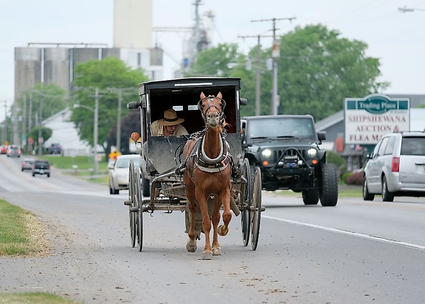 Caballo Amish y buggy en Shipshewana, Indiana. Crédito editorial: haveseen / Shutterstock.com