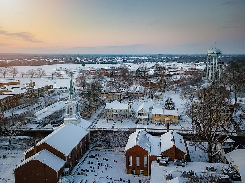 Vista aérea de Allentown, Nueva Jersey, en invierno.