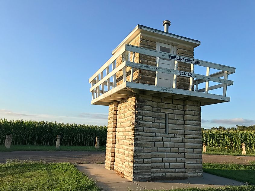 Una torre de vigilancia del campo de prisioneros en Concordia, Kansas. Crédito editorial: Lost_in_the_Midwest / Shutterstock.com