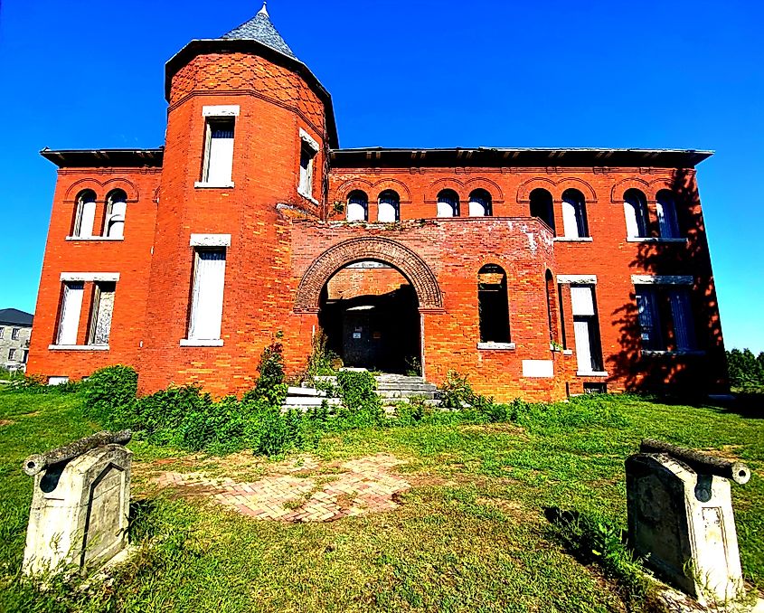 Un edificio en ruinas en Madison Barracks en Sackets Harbor, Nueva York. Crédito editorial: ArtByArthur / Shutterstock.com