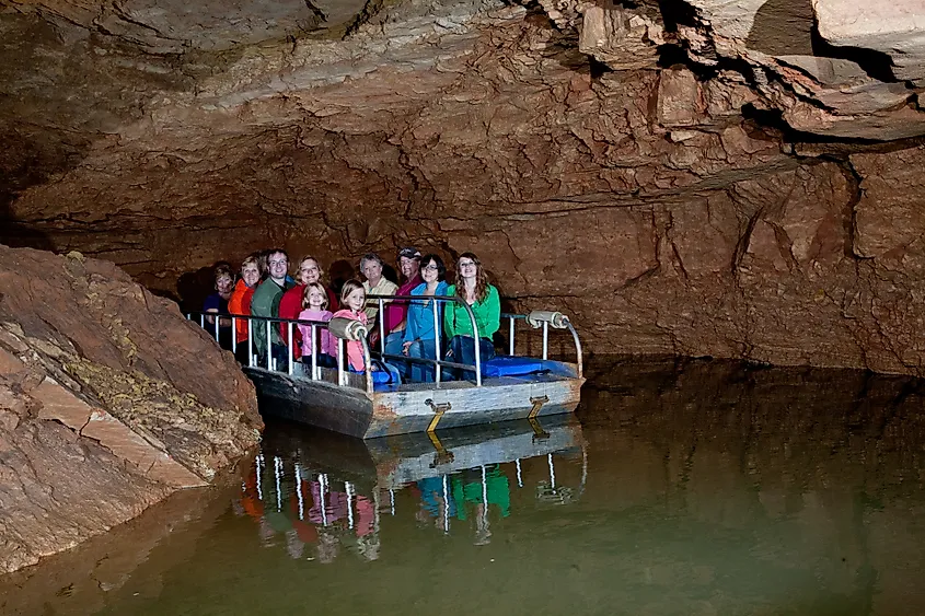 Una parte del paseo en barco subterráneo en las Cavernas de Indiana en Corydon, Indiana. Por indianacaverns – Trabajo propio, CC BY-SA 4.0, Wikimedia Commons.