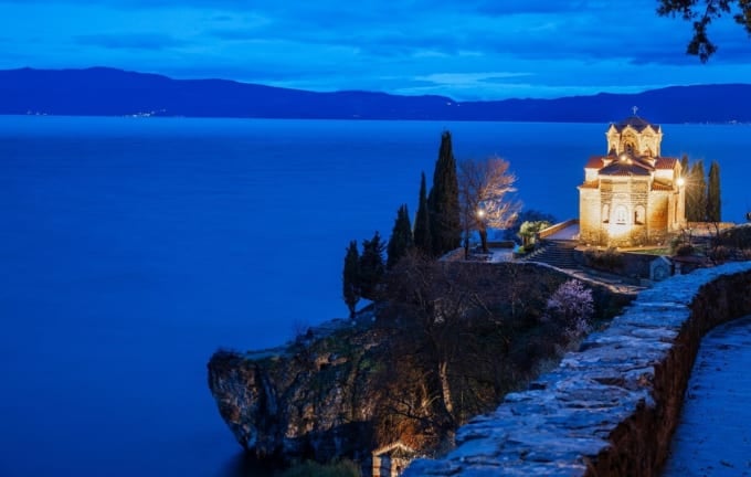 Uno de los lugares más fotogénicos de Ohrid es la iglesia de San Juan en Kaneo, que se encuentra en un acantilado con vistas al lago. Los frescos del interior de la iglesia también son una visita obligada.