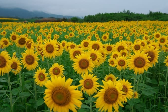 ¿Has oído hablar de la isla Zeniri? Esta impresionante isla, que incluso ha aparecido en anuncios de televisión, presume de un paisaje fantástico. Ubicada a unos 30 km de la desembocadura del río Yoshinogawa, la isla Zeniri es una isla no tripulada que cubre 500 hectáreas y es la isla fluvial más grande de Japón. En julio, toda la isla se llena de girasoles en flor, creando un vasto mar amarillo que es realmente edificante. Sin casas en la isla, todo lugar al que mires está cubierto de girasoles.