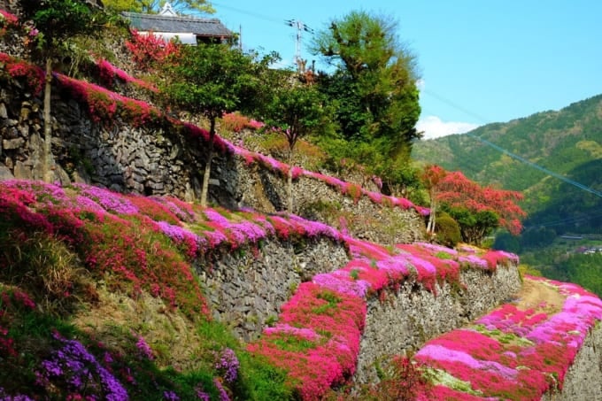 1. Ver el paisaje tradicional del muro de piedra de Takakai