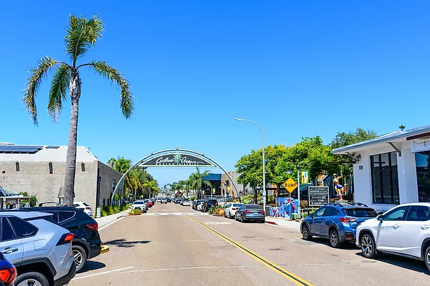 Vista de la calle del distrito de diseño de Cedros Avenue en Solana Beach, California. Haber de imagen: Michael Vi/Shutterstock.com