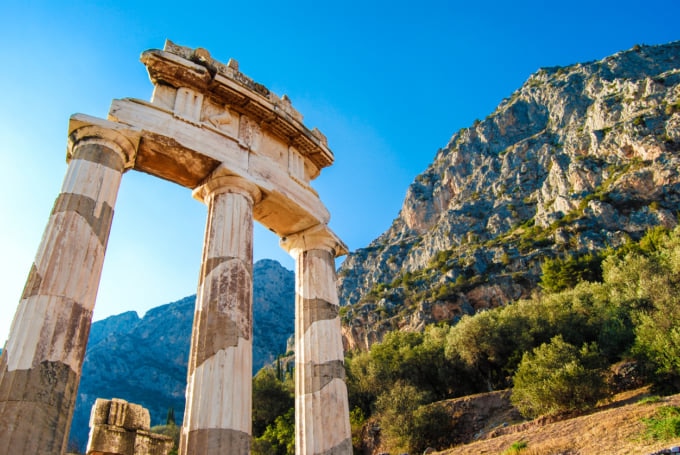 Camine por el Camino Sagrado para llegar al Templo de Apolo, el santuario donde Pythia pronunció sus profecías y los sacerdotes las interpretaron. La vista de las montañas y el ambiente de este lugar sagrado seguramente te abrumará. No deje de visitar el antiguo teatro y el estadio de Delfos, así como el manantial Kastalia, un lugar de belleza desconcertante situado dentro del barranco que separa los dos acantilados de Fedriades.