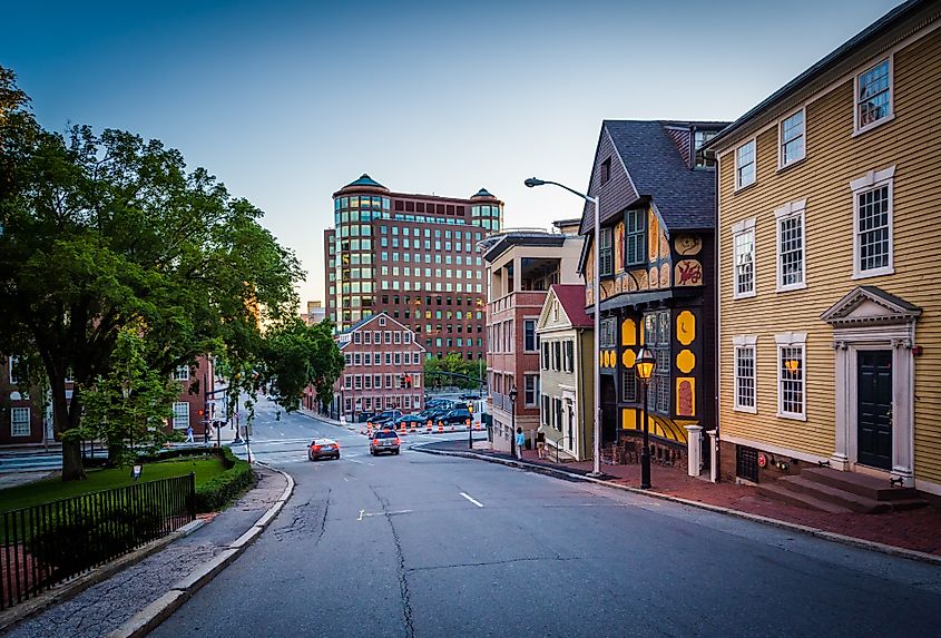 Vista a lo largo de Thomas Street en Providence, Rhode Island.