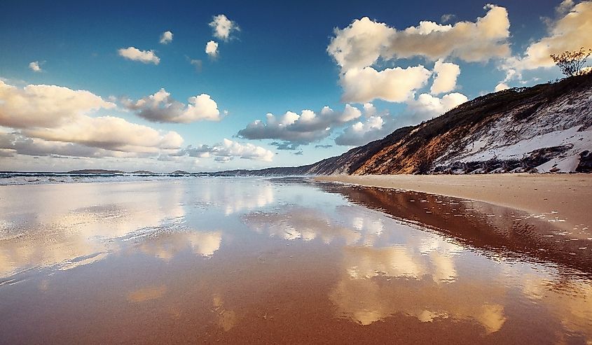 Rainbow Beach con reflejo del cielo. Crédito de la imagen Andrew Bayda a través de AdobeStock.