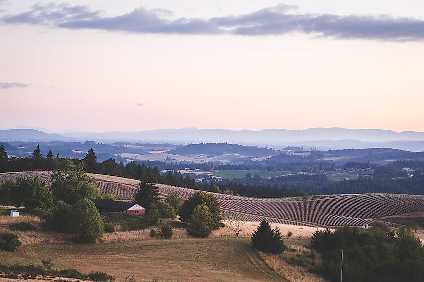 Paisaje de colinas onduladas en Newberg, Oregón.