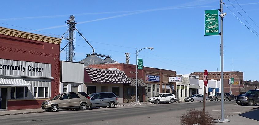 Vista del centro de Elgin en Nebraska. Por Ammodramus – Trabajo propio, Dominio público,Wikimedia Commons.