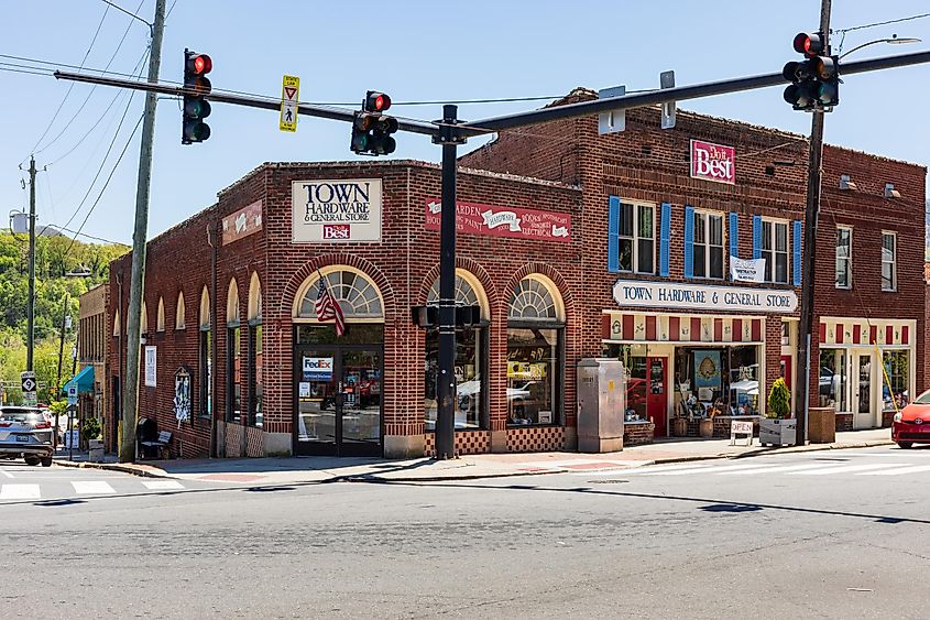 Ferretería y tienda general en Black Mountain, Carolina del Norte. Crédito de la imagen Nolichuckyjake a través de Shutterstock.com