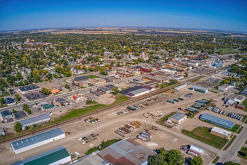 Vista aérea de Wahpeton, Dakota del Norte.
