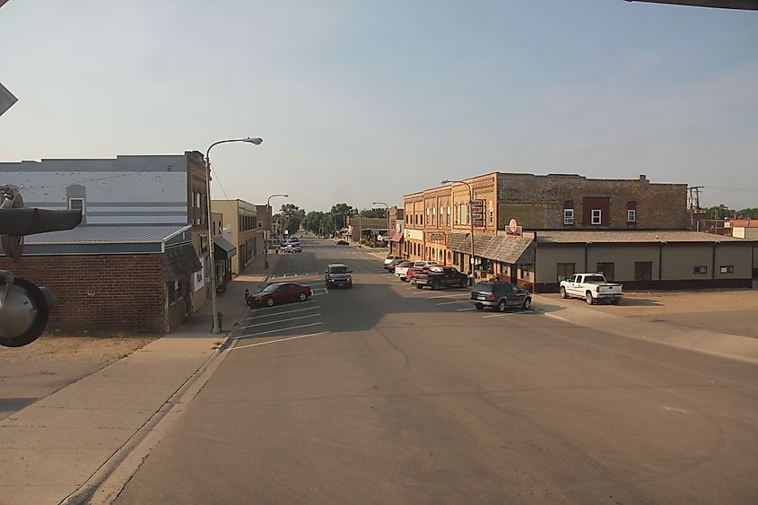 Vista de la calle en Garrison, Dakota del Norte. Por Andrew Filer – Flickr, CC BY-SA 2.0, Wikimedia Commons