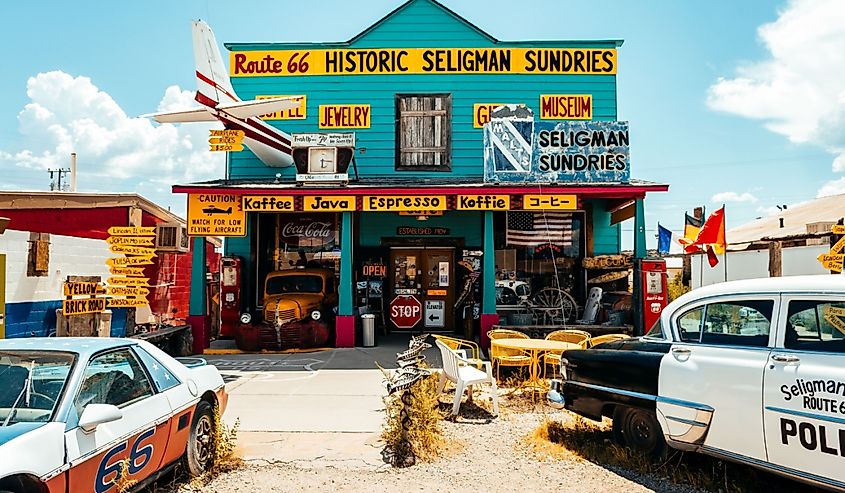 Tienda histórica de la Ruta 66 en Seligman, AZ. Crédito de la imagen Jon Chica a través de Shutterstock.