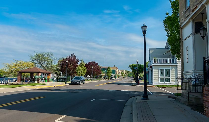 Calle del centro de Pentwater, Michigan. Crédito de la imagen Aventuras enfocadas a través de Shutterstock