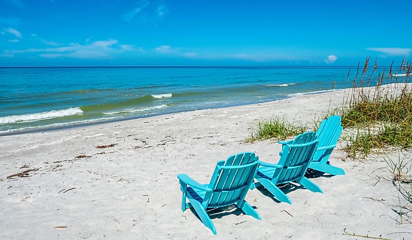 Sillas de playa en la playa del Golfo de México en Longboat Key. Crédito de la imagen Jim Schwabel a través de Shutterstock