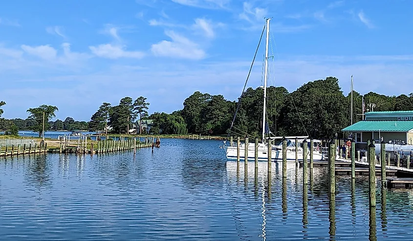 A cuatro millas de la zona abierta de Chesapeake, puedes navegar y atracar en un puerto deportivo, con barcos de pesca transportando capturas frescas. En lugar del ambiente de un resort de playa, el alquiler de kayaks y tablas de remo está a tu alcance, además la isla de Tánger está a solo una hora en ferry hacia la bahía. Ker Place, de estilo federal, era la casa de un granjero comerciante local. Después de una gran cantidad de galerías, cafés con patio al aire libre y el cine de 1950, el Roseland Theatre, disfrute del atardecer en el muelle con águilas pescadoras y grandes garzas azules.
