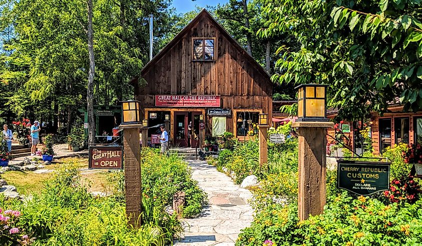 Frente al Gran Salón de la tienda Cherry Republic, Glen Arbor, Michigan. Crédito de la imagen LukeandKarla. Travel a través de Shutterstock