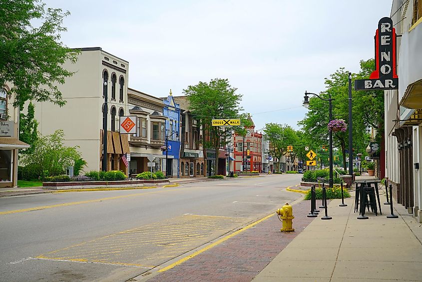 Edificios rústicos alineados a lo largo de una calle en Greenville, Michigan. Crédito editorial: Fsendek / Shutterstock.com