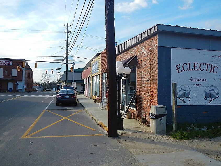 Calle del centro de Eclectic, Alabama. Crédito de la imagen Rivers Langley; salvar ríos,CC BY-SA 3.0, a través deWikimedia Commons