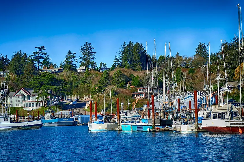 Puerto deportivo de Yaquina Bay Harbor en Newport, Oregón. Crédito de la imagen steve estvanik a través de Shutterstock