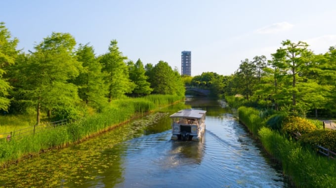 Una forma relajante de explorar el parque es realizar un crucero por el canal de este a oeste que corre entre las áreas de la ciudad y la aldea. El “Garden Cruise Sightseeing Boat” permite a los visitantes admirar tranquilamente los vibrantes jardines de flores y la exuberante vegetación desde el agua.
