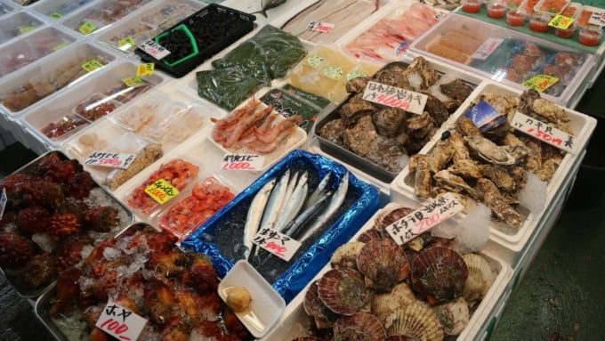 Como mercado mixto mayorista y minorista, ¡los precios son muy asequibles! Además de alimentos frescos, hay una gran selección de alimentos preparados, como guarniciones, encurtidos y productos procesados como kamaboko (pasteles de pescado). Mucha gente viene aquí a comprar ingredientes para la cena o refrigerios para pasar la noche. Si te hospedas en un hotel o ryokan, aquí puedes disfrutar de excelentes sabores locales a un precio razonable.