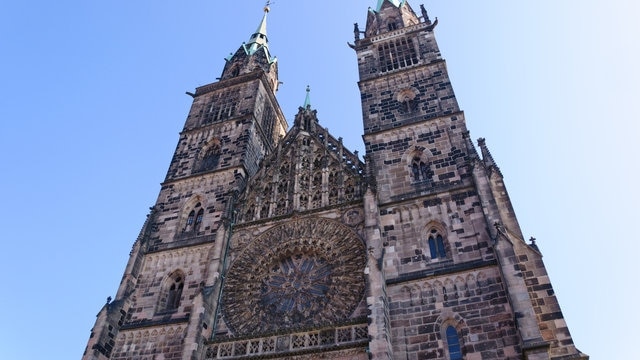 Si camina desde la estación central de Núremberg hacia Hauptmarkt por la Königstraße, verá la iglesia de San Lorenzo a su derecha. Esta es la iglesia más grande de Nuremberg y es un ejemplo clásico de arquitectura gótica, con dos agujas algo rugosas y un magnífico rosetón de 9 metros en el medio. La pesada construcción de piedra, adornada con diversos relieves, le confiere un aire histórico, aunque carece de excesiva ornamentación.