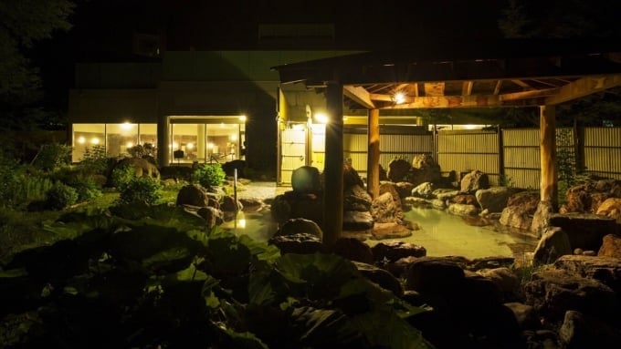 El baño al aire libre, rodeado de rocas, tiene techo, lo que permite a los huéspedes disfrutar del baño independientemente del tiempo que haga. Por la noche, pequeñas luces iluminan los árboles, creando una atmósfera de ensueño y encantadora. Uno de los encantos de las aguas termales del Asari Classe Hotel es que puedes disfrutar de un ambiente diferente entre el día y la noche.