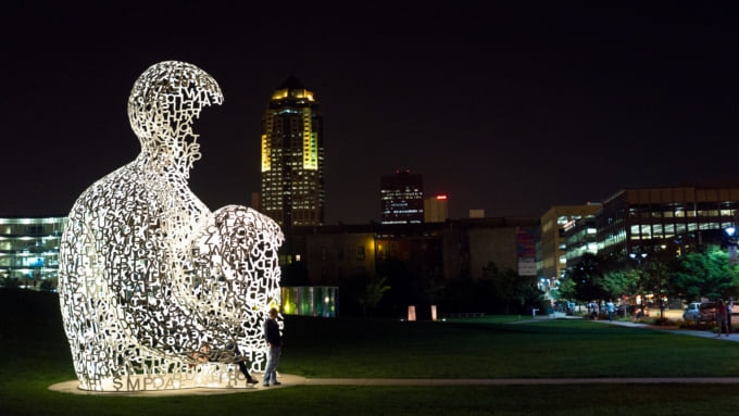 Una vista muy fascinante e increíble de la ciudad de Des Moines es el Parque de Esculturas Pappajohn. El parque de casi cinco acres presenta el arte de los artistas más conocidos del mundo. Las personas interesadas en ver estatuas extraordinarias y otras obras de arte pueden programar una visita guiada o simplemente caminar por las aceras y sorprenderse con la creatividad de estos artistas. También se permite hacer picnic en el parque y con las estatuas que rodean el picnic da una sensación increíble acompañar la comida que los visitantes toman allí.