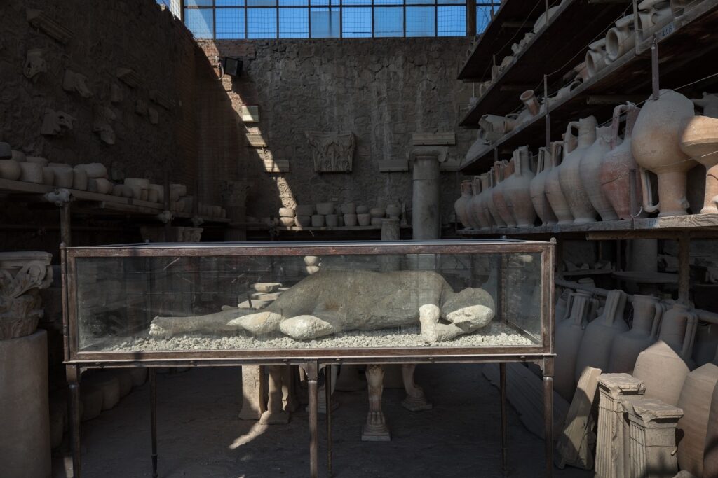 El arqueólogo del siglo XIX Giuseppe Fiorelli fue pionero en el uso de yeso, inyectado en los espacios debajo de los escombros, para producir moldes de los pompeyanos en sus momentos finales. Hoy en día, Pompeya es una de las mayores ventanas del mundo a la antigüedad.
