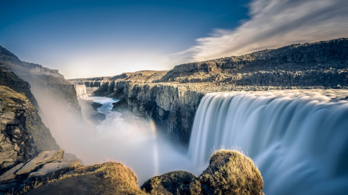 Como la cascada más poderosa de Europa, Dettifoss no debe perderse en ningún viaje a Islandia. Casi 100.000 galones de agua caen por el borde de Dettifoss cada segundo. Con una caída de 45 metros, las cataratas son más altas que la Estatua de la Libertad y su ancho es de unos 100 metros de largo. Los islandeses a veces se refieren a Dettifoss como "La Bestia", mientras que a la cercana cascada de Godafoss se la conoce como "La Bella".