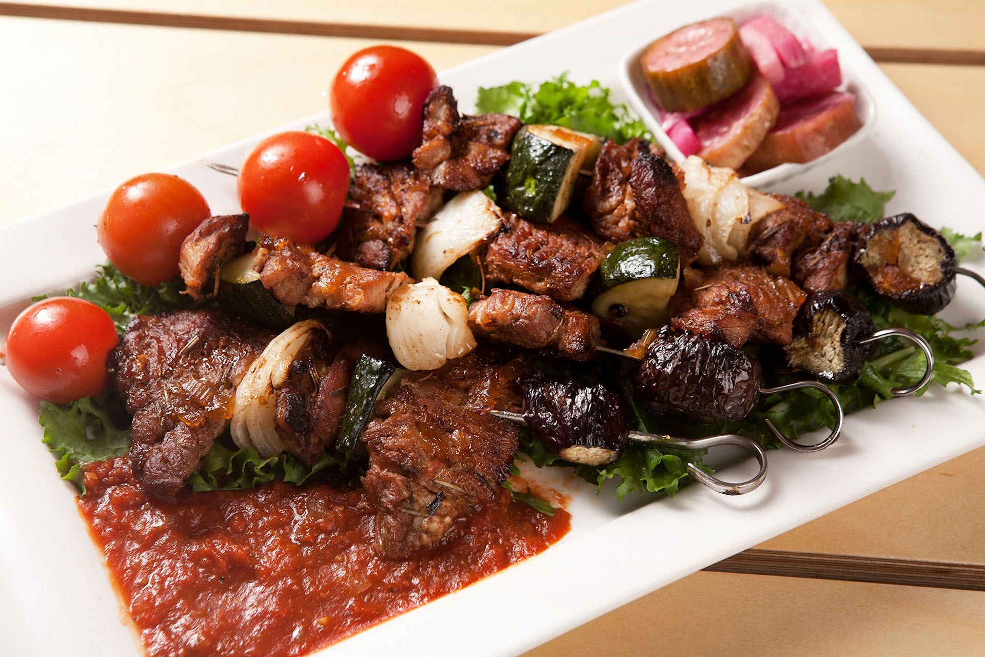 Verduras frescas, churrasco asado crujiente © TMON/Shutterstock