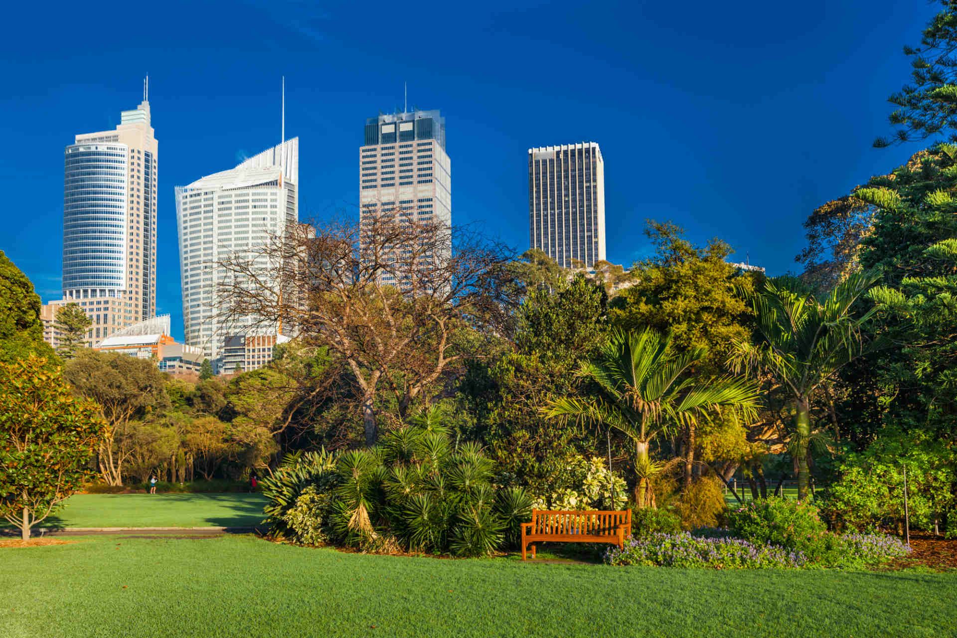 Jardín botánico de Sydney con rascacielos detrás, Australia © DAE Photo/Shutterstock
