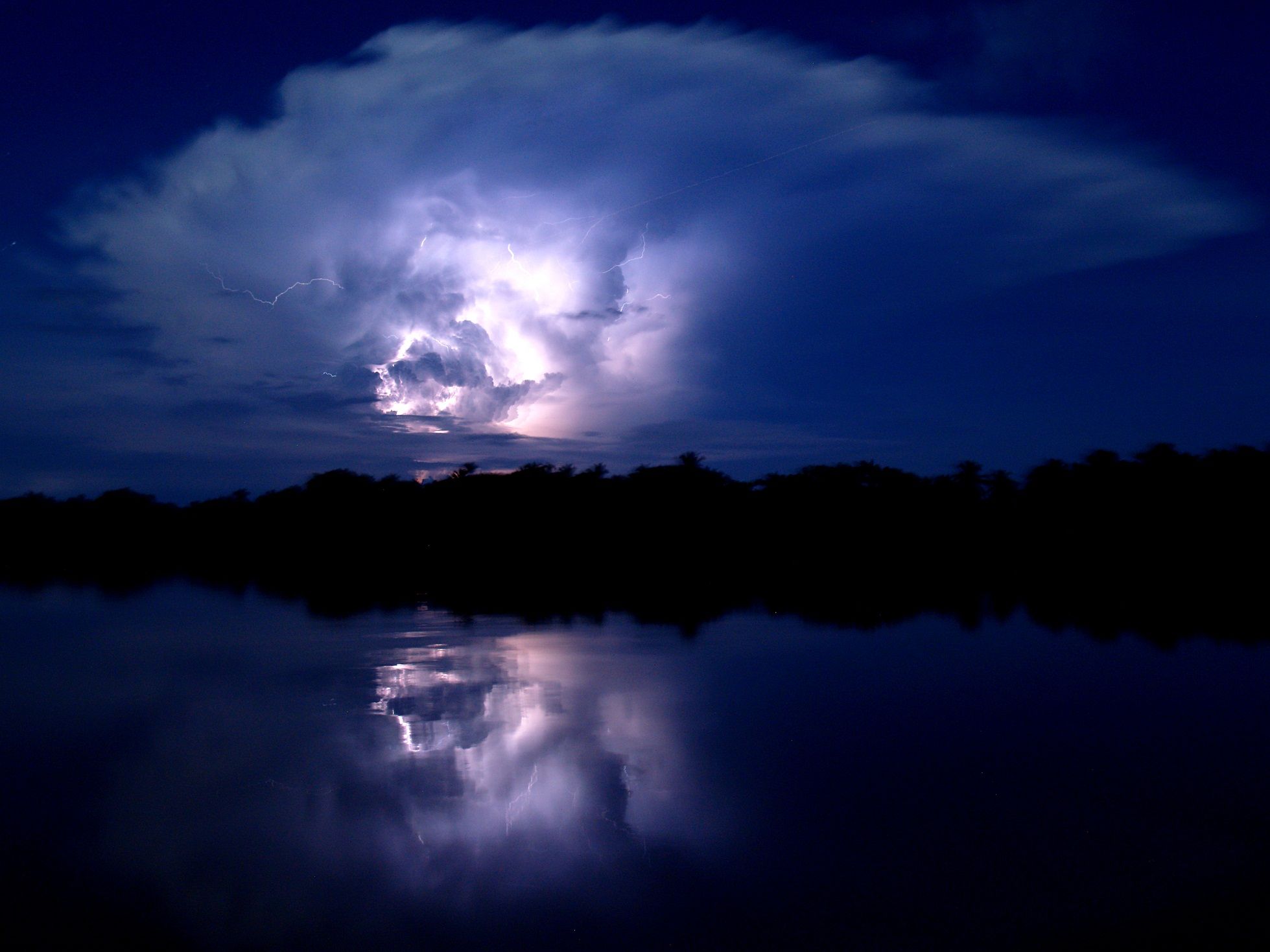 Las tormentas se acumulan por todos lados y, en poco tiempo, el mundo nocturno que nos rodea se ha transformado en una enorme luz estroboscópica. Los monos que habitan en las palmeras se esconden en el follaje más denso mientras los relámpagos se vuelven incontables. La charla del grupo se convierte en asombro silencioso a medida que las tormentas alcanzan su cenit, con múltiples rayos emergiendo juntos, y sus truenos nos llegan por triplicado mientras observamos los relámpagos más intensos del mundo.