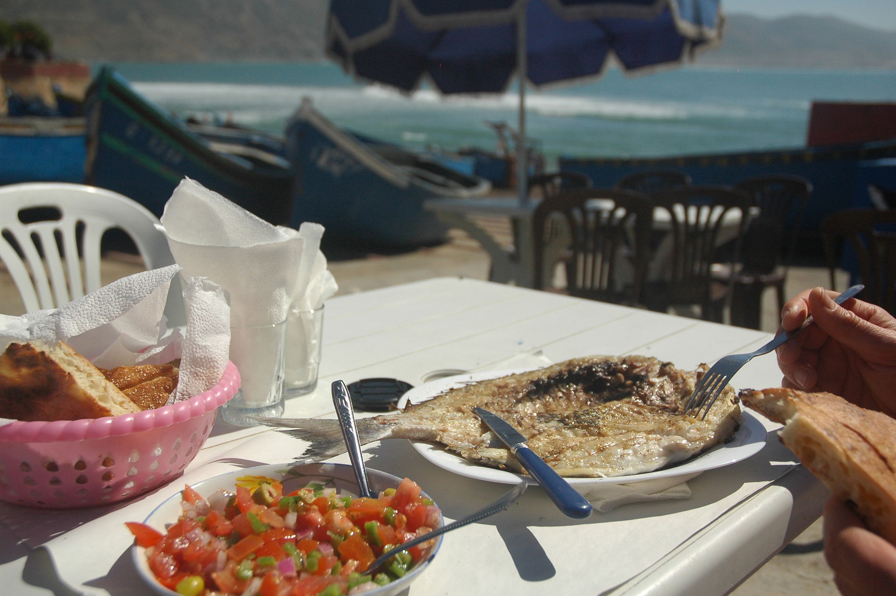 Ya sea que cenáramos pescado fresco en el puerto o platos de cuscús y tajines en la casa de huéspedes, la cocina no sólo era deliciosa sino también barata (entre 10 y 15 € por una comida para dos). Sí, existen riesgos de intoxicación alimentaria en Marruecos, y una intoxicación alimentaria grave puede ser perjudicial para su bebé, pero los riesgos son mínimos si se limita a comer alimentos recién cocinados y bien calientes y agua embotellada, y se evitan los cubitos de hielo, los buffets y las frutas y verduras sin lavar.