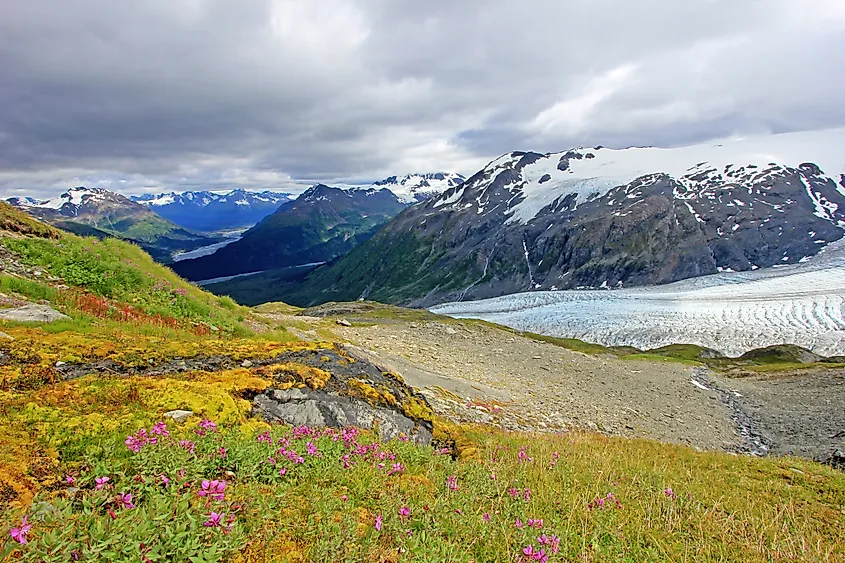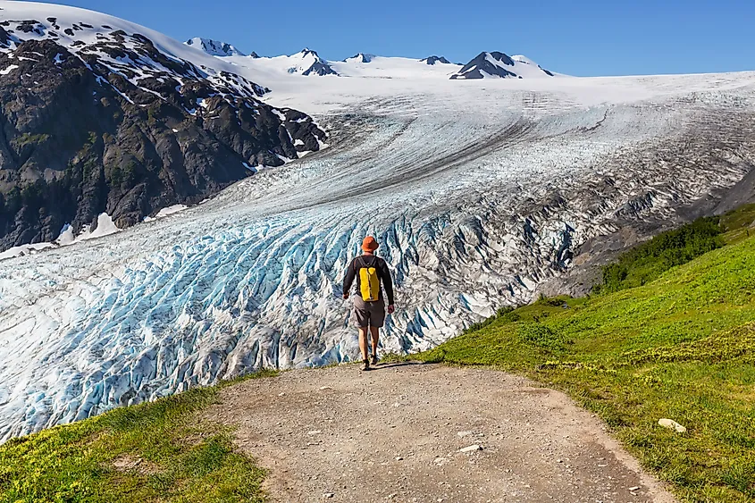 Y si está dispuesto a enfrentarse a los osos, las pendientes pronunciadas y las condiciones siempre cambiantes, Exit Glacier también es la puerta de entrada al Harding Icefield Trail. Esta caminata de 8,2 millas a través de los glaciares es extenuante, pero recompensa a los excursionistas intrépidos con algunas de las mejores vistas terrestres del parque. El personal del parque no recomienda intentar el sendero fuera de los meses de verano a menos que sea un montañero con mucha experiencia.
