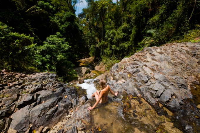 Emerald Pool es una hermosa piscina natural situada en medio de la naturaleza. El área está rodeada de una exuberante vegetación verde y árboles que resaltan las aguas color esmeralda. Estas aguas cristalinas resultan muy apetecibles tanto para la vista como para el cuerpo ya que son muy refrescantes. En un día caluroso, la piscina tiende a estar repleta de turistas y lugareños que van allí para refrescarse. Hay peces pequeños que mordisquean mientras devoran la piel muerta del cuerpo, lo que se considera terapéutico. El momento ideal para visitarlo es por la mañana antes del mediodía, cuando no hay tanta gente.