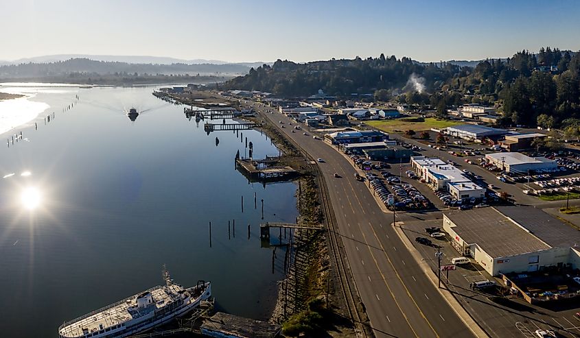 Vista aérea de Coos Bay, Oregón. Crédito de la imagen Manuela Durson a través de Shutterstock